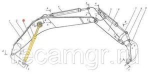 Рычаг ковша — это важный элемент механизма экскаватора-погрузчика, который соединяет ковш с основной гидравлической системой машины. Он служит для управления движением ковша, позволяя оператору эффективно контролировать его угол наклона, высоту подъема и опускания.